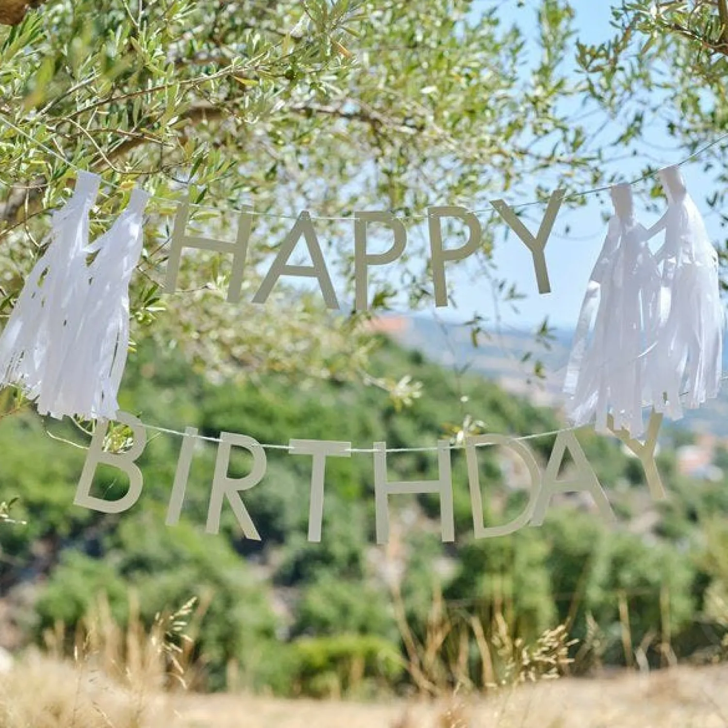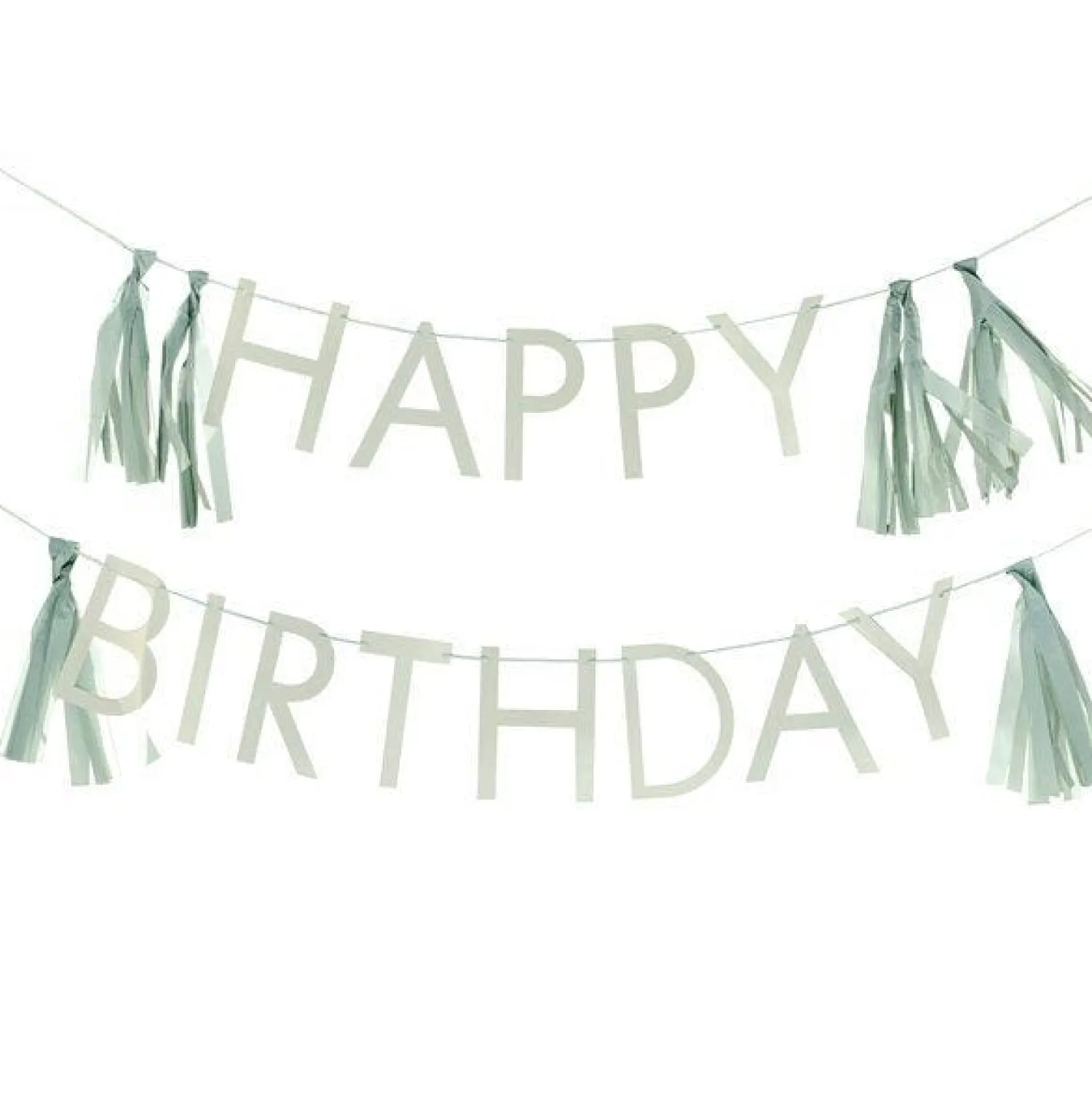 Party Delights Eco Sage Green ‘Happy Birthday’ Letter Banner With Tassels – 1.5M< Banners