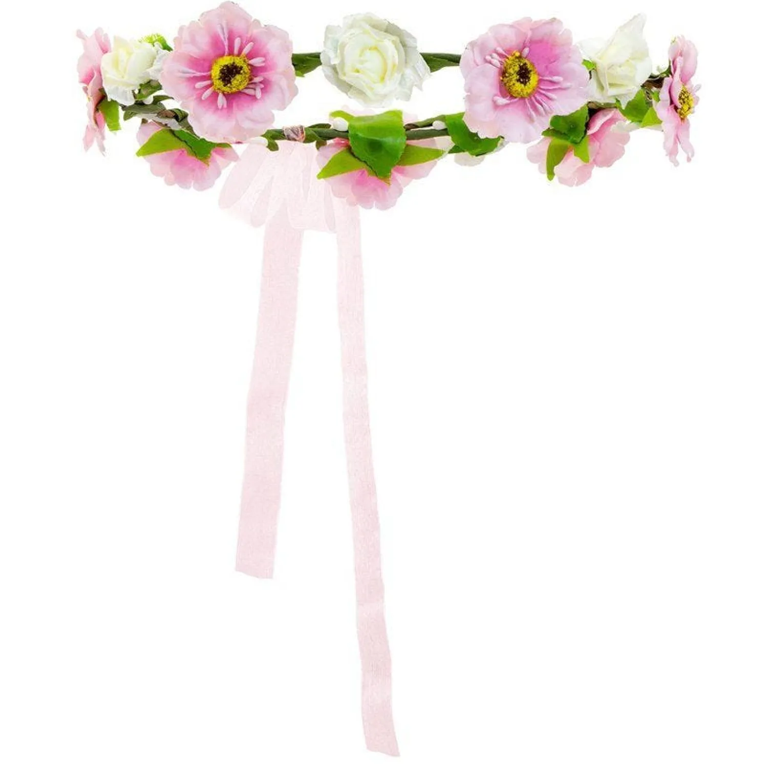Finish Off Your Look With This Gorgeous Pink And White Flower Crown With A Pink Ribbon Detail.
