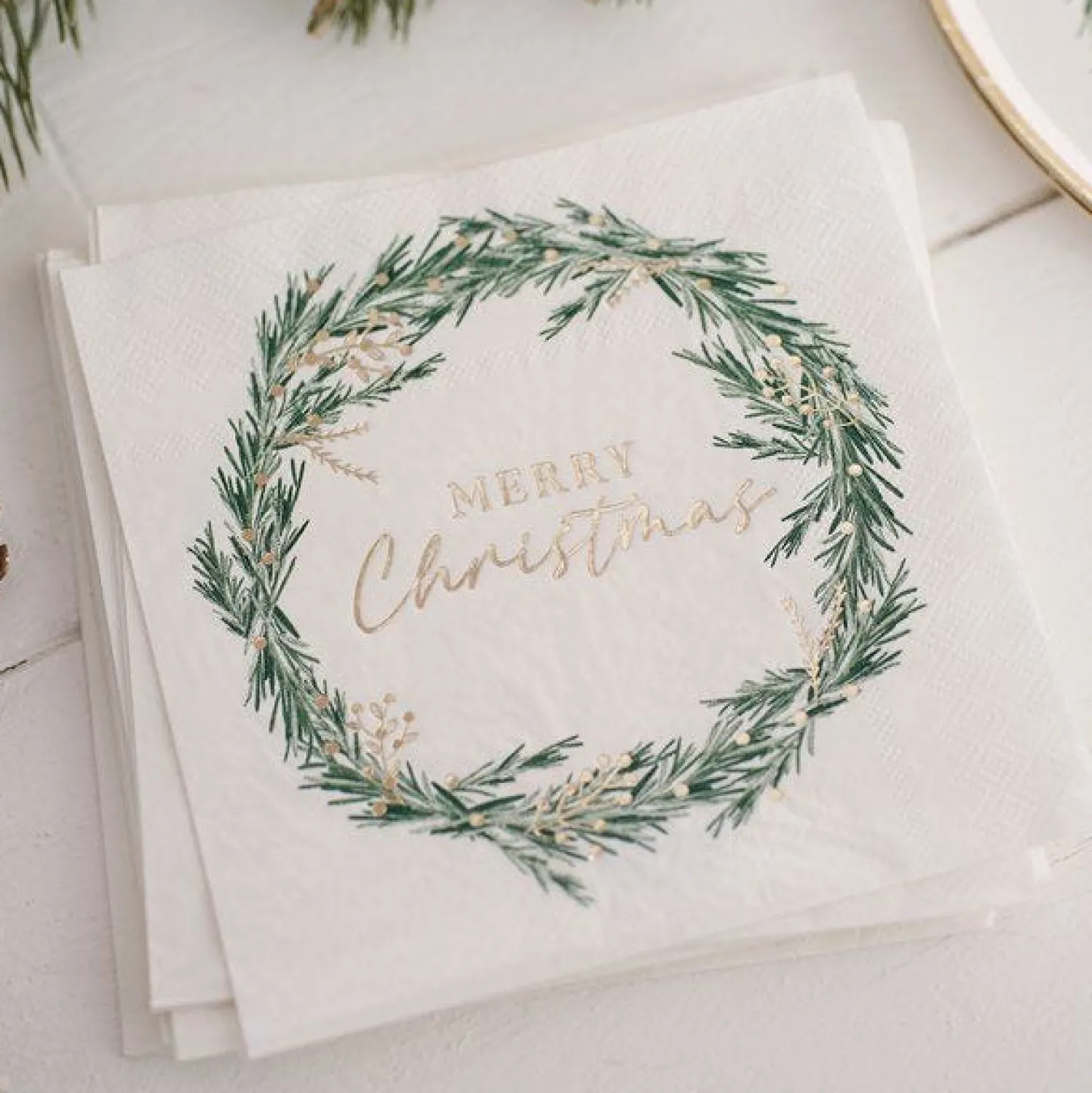White Merry Christmas Wreath Paper Napkins – 33Cm (16Pk)<Party Delights Online
