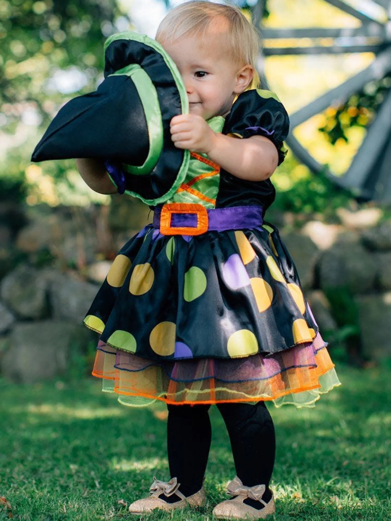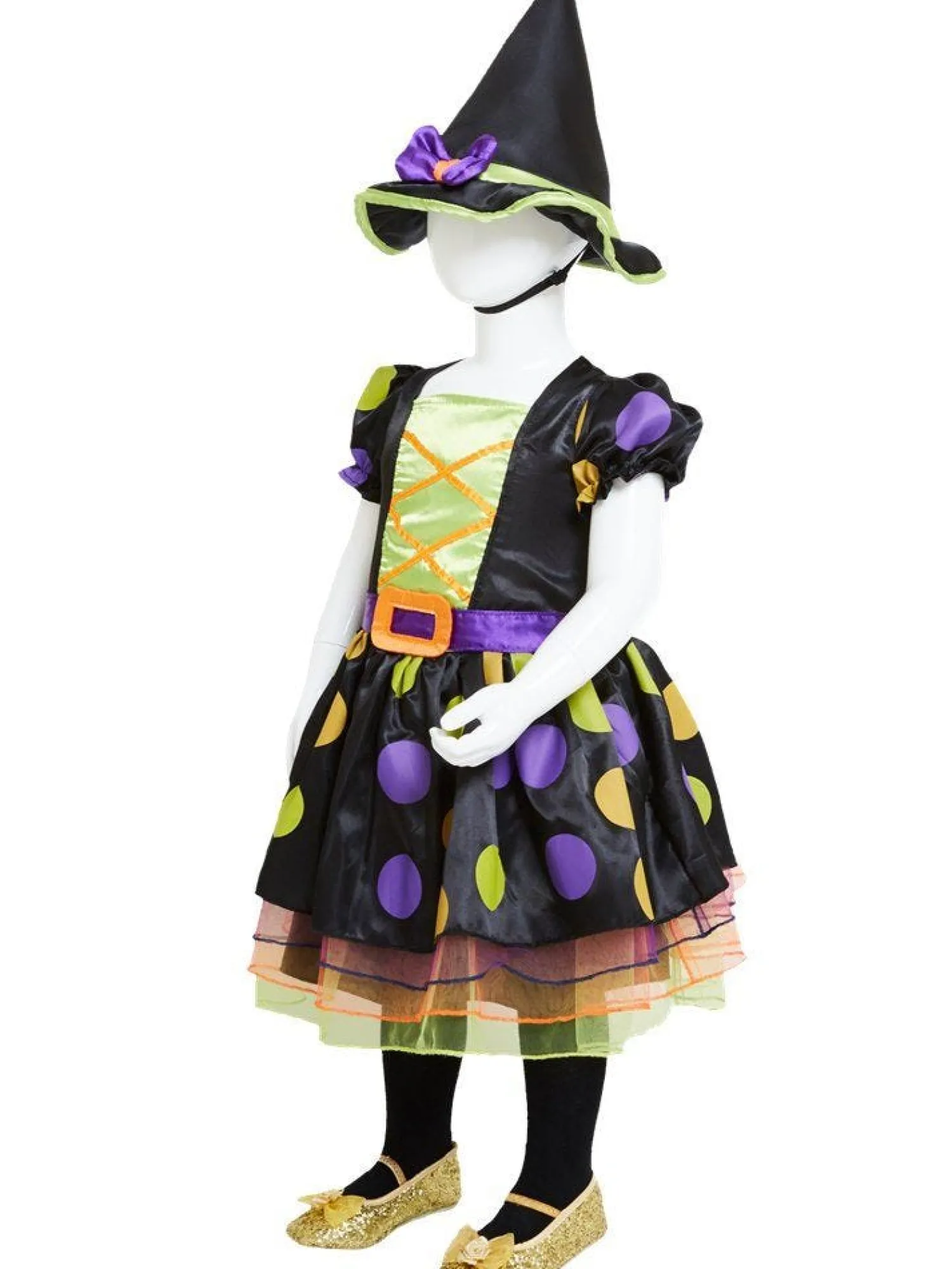 This Little Witch Looks Ready To Get Up To Some Halloween Mischief! A Perfect Costume For Their First Time Trick-Or-Treating, This Cute Dress Has Puff Sleeves And A Spotty Skirt With Layers Of Tulle Netting Underneath For Volume. To Complete The Look, A Pointy Black Witch’s Hat Is Also Included.