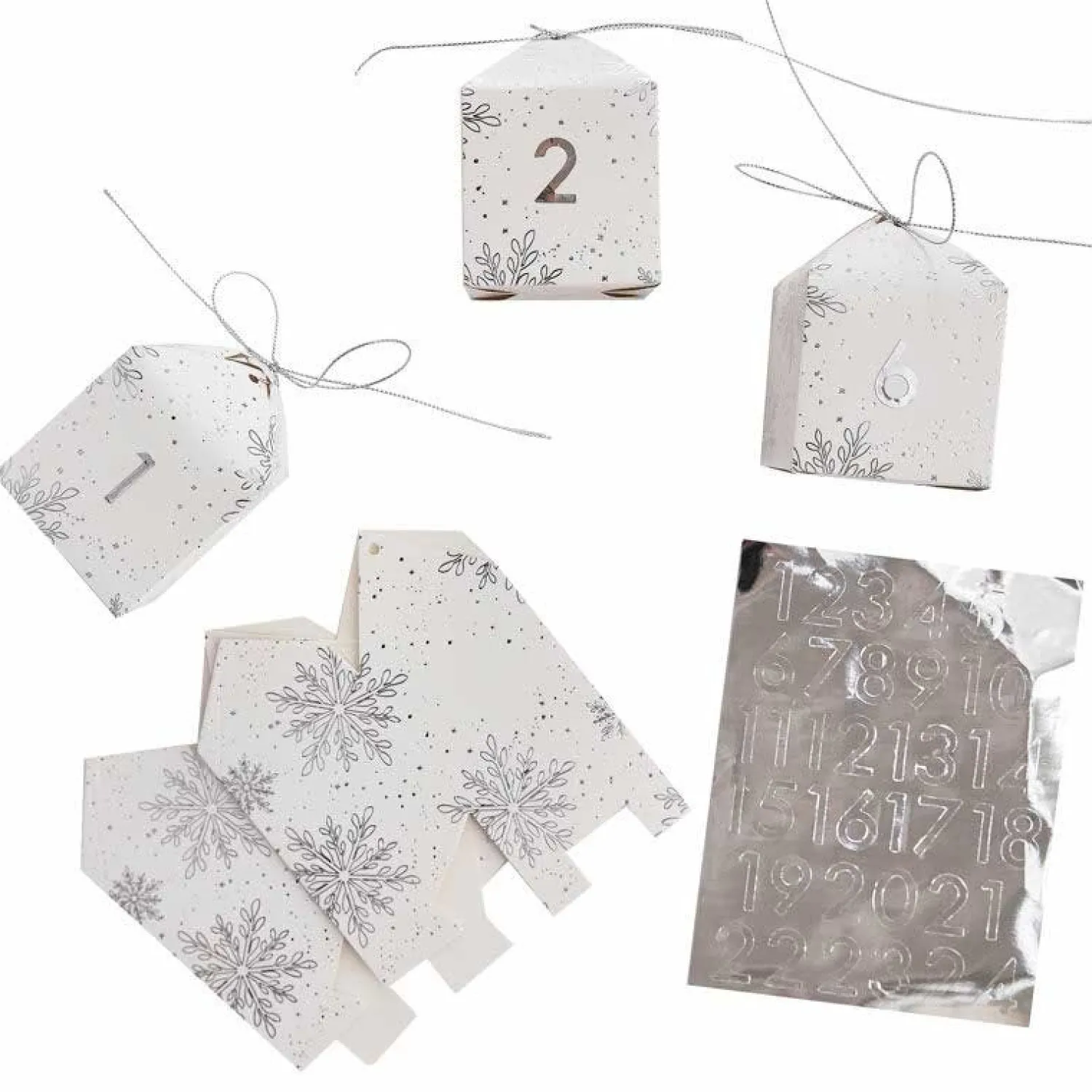 Countdown To Christmas With Our Silver Foiled Snowflake Design Advent Boxes, Simply Pop Up The Boxes And Fill With Sweets And Little Treats For That Special Someone Who Just Loves Christmas! Measuring 6Cm Wide By 9Cm High, These Little Gift Boxes Are Perfect As A Stocking Filler Alternative. 24 Boxes Measuring 9Cm (H) X 6Cm (W) X 6Cm (D)1 X Sticker Sheet Including All Numbers Ranging From 1 – 24Silver String Included.