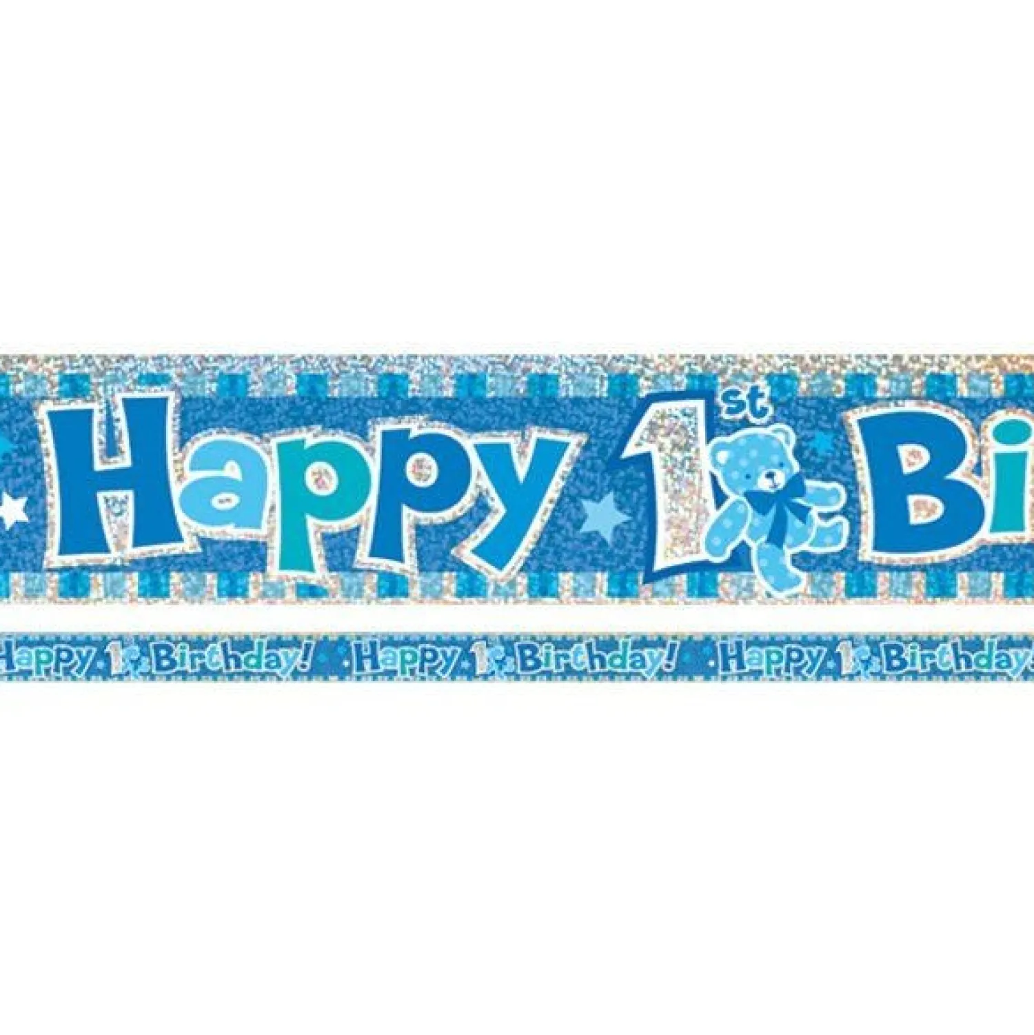 Party Delights Blue ‘Happy 1St Birthday’ Holographic Foil Banner – 3.7M< Banners