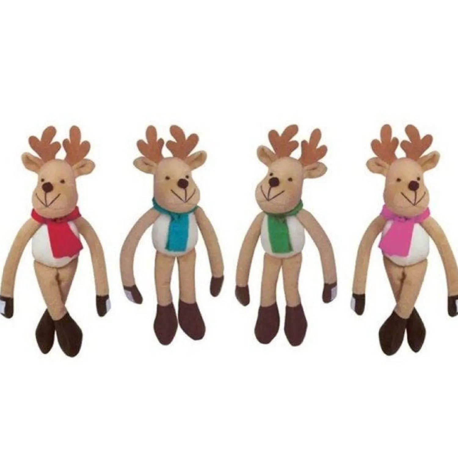 28Cm From Fingertips To Toes, These Soft Plush Reindeer Have Velcro Hands So They Can Hang Almost Anywhere. Assorted Coloured Scarves.